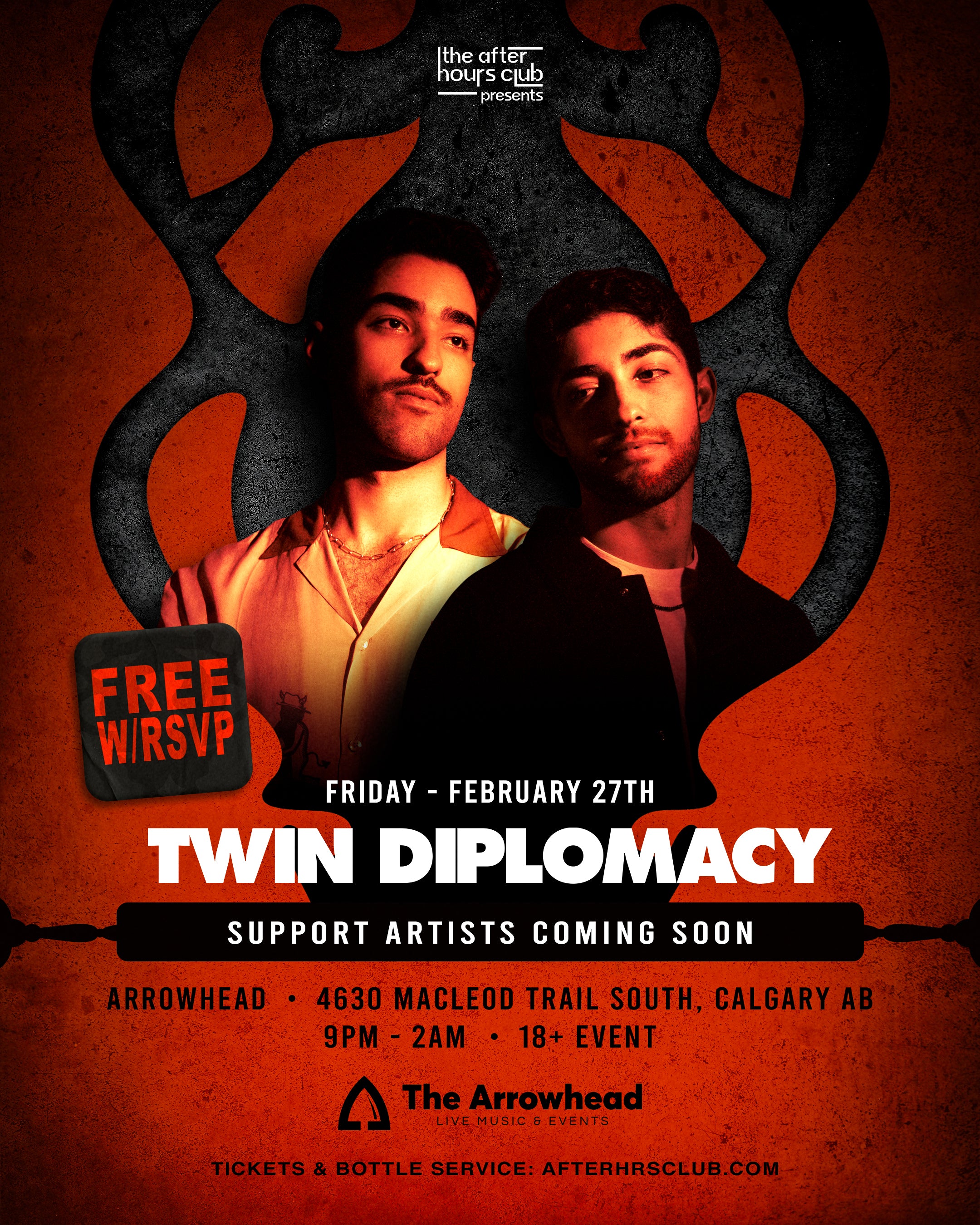 Step into a night of house music, connection, and dual energy as The After Hours Club presents Twin Diplomacy β a FREE show in collaboration with Arrowhead, created as a thank-you for your support this year! π΅